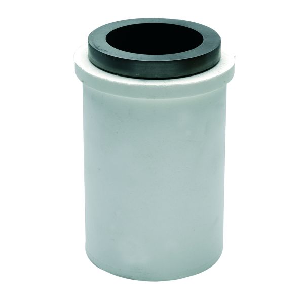Graphite crucible set with raised edge and ceramic holder for induction furnace.