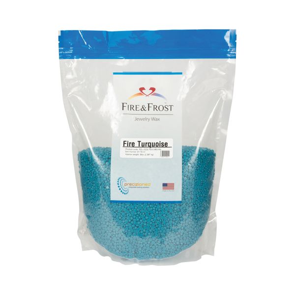 Fire&Frost Torquoise wax has been developed to cover a wide range of models with different shapes, volumes, and sizes. Excellent both for items with very thin sections and items with large, smooth, high-detailed surfaces. This wax offers perfectly balanced features, for example good flexibility which allows an easier removal of model from the mold, excellent replication of details, combined with high surface quality and smooth surfaces. Moreover, during the injection phase it presents an excellent fluidity and very low shrinkage. The peculiar opacity is highly appreciated during quality control. Thanks to the combined flexibility and memory this wax is suitable for pre-stone-setting. Fire&Frost waxes are produced in the US with the purest, high quality synthetic raw materials.Â